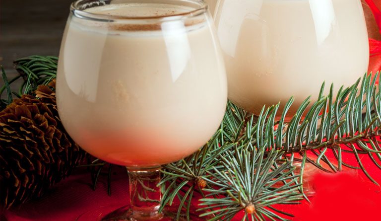 Verter 3 tazas de leche líquida completa en una olla mediana, agregar la media cucharadita de nuez moscada y calentar a fuego medio sin dejar hervir.