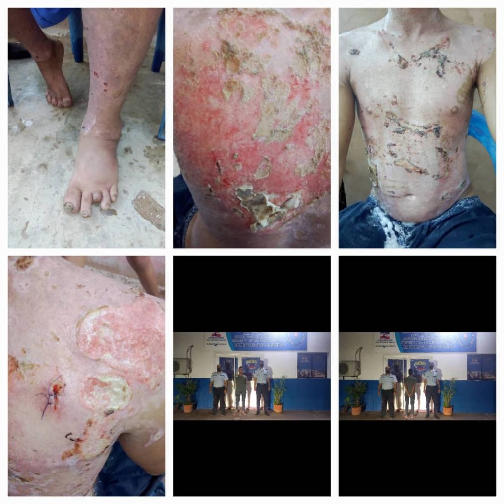 Asimismo, las actuaciones policiales fueron notificadas a la Fiscalía Décimo Tercera (13ª) del Ministerio Público de la Circunscripción Judicial Penal del Estado Zulia y a la víctima lo llevaron hasta el Hospital Materno Infantil de El Marite, donde le evaluaron clínicamente dejando constancia de haber sufrido quemaduras de segundo y tercer grado en gran parte de su humanidad, así como amputado el dedo medio del pie izquierdo y heridas de arma blanca en la espalda.