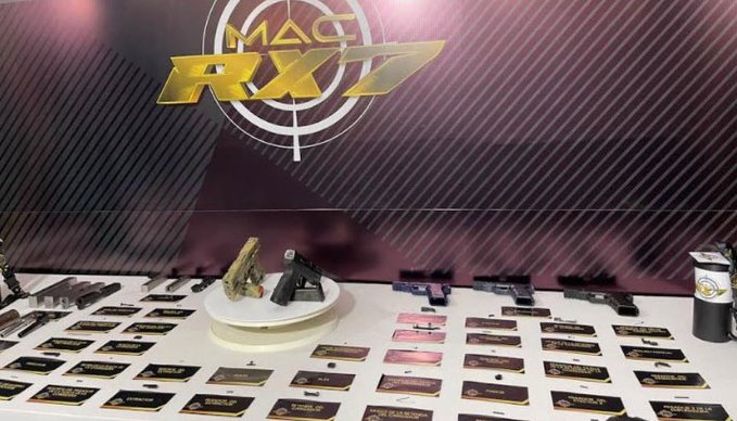 El comisario y director del CICPC, Douglas Rico, participó en la Expo Seguridad Ciudadana 2021 que se realizó en los espacios de El Laguito, Fuerte Tiuna, los días 17 y 18 de diciembre, donde presentó la primera pistola fabricada completamente en el país, la cual es denominada MAC RX-7.
