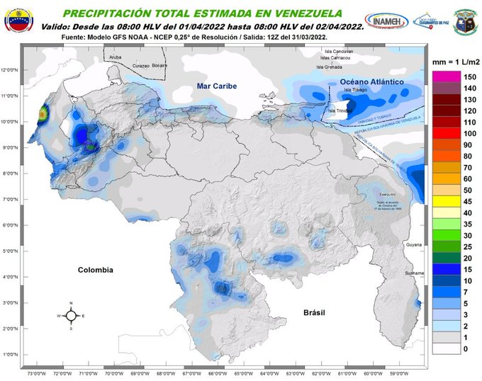 El organismo indicó que igualmente se esperan lluvias en zonas de Zulia, Andes, Barinas, Apure, Amazonas, Bolívar y el Esequibo. Además, se esperan lluvias o lloviznas aisladas en Falcón, Yaracuy, Portuguesa, Centro Norte Costero y Sucre.