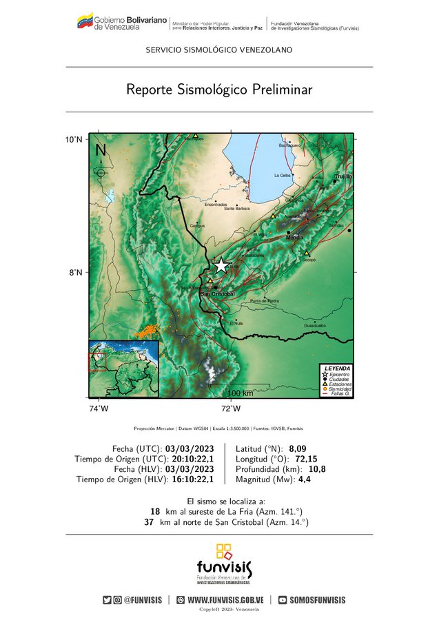 Por su parte, La Fundación Venezolana de Investigaciones Sismológicas (Funvisis) informó que el sismo se registró a las 4:10 PM a 18 kilómetros al sureste de La Fría con una profundidad de 10.8 kilómetros.