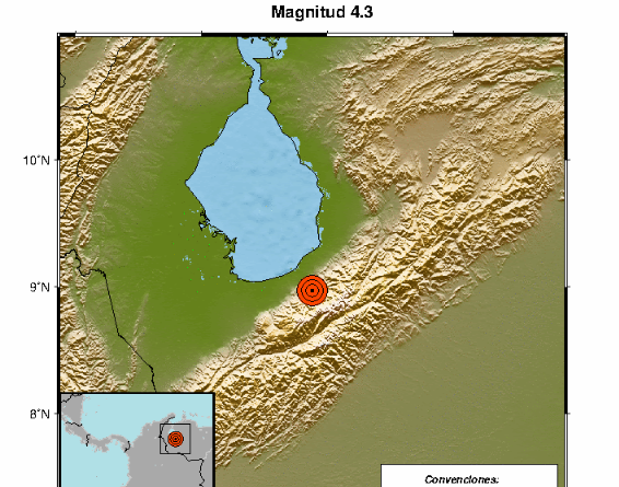 A través de su cuenta en Twitter el Servicio Geológico Colombiano, informó que se registró un sismo de magnitud 4,3 a las 2.59 de la mañana de este martes #1 de marzo.
