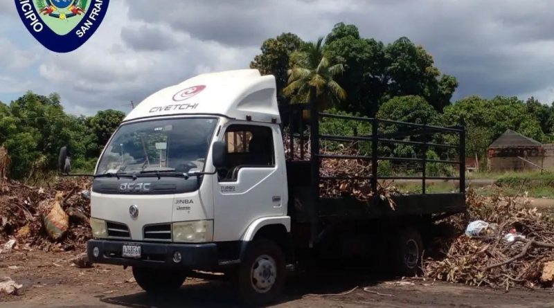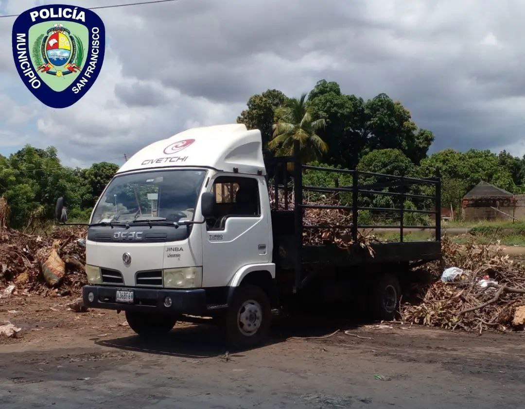 Oficiales de la División de Patrullaje Motorizado de la Policía del Municipio San Francisco, retuvieron un camión en la Zona Industrial que botaba desechos sólidos en la vía pública.