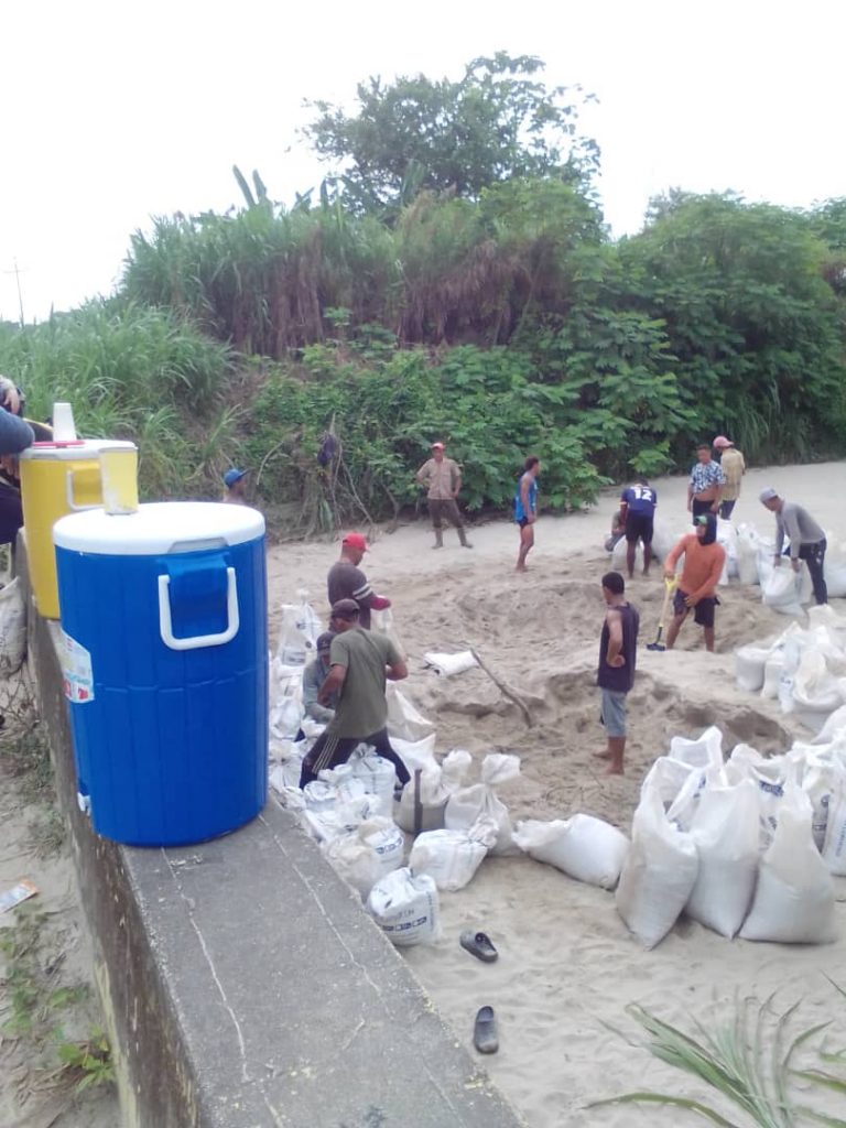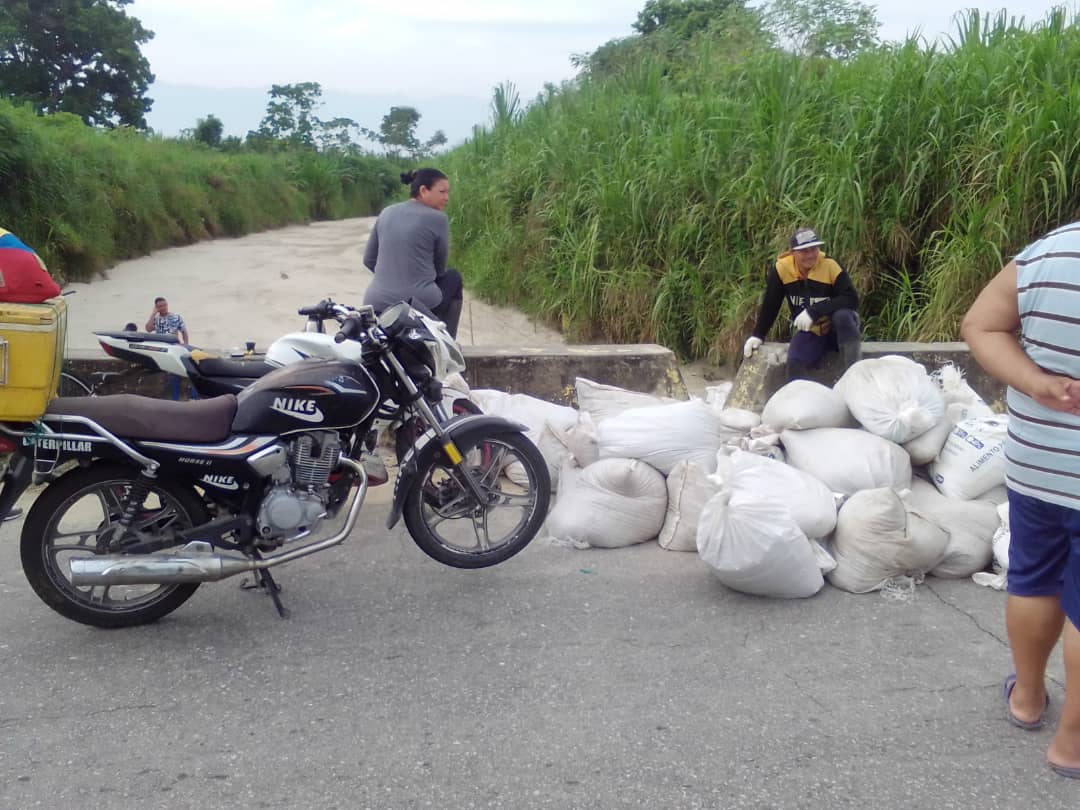 Indicó Pirela que la comunidad está colocando una especie de dique con sacos de arena para evitar que el río siga avanzando, y queden incomunicados en su totalidad.