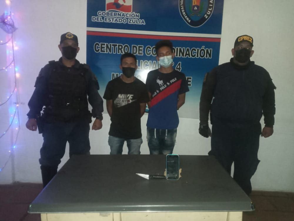 Detalló sobre el caso el C/J Sergio Villasmil Rondón director general del Cuerpo de Policía del estado Zulia (Cpez), que los hombres identificados como Gustavo Alfonzo Finol Espina (31) y Daniel González Aguilar (18), amenazaron a los presentes con un arma blanca tipo cuchillo para despojarlos de sus pertenecías; uno de ellos en un forcejeo con un adolescente de 16 años, dislocándole el hombro.