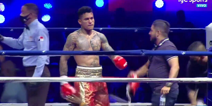 Al levantarse, Bravo intencionalmente escupió el protector bucal, seguido fue sancionado con el descuento de un punto de parte del árbitro.