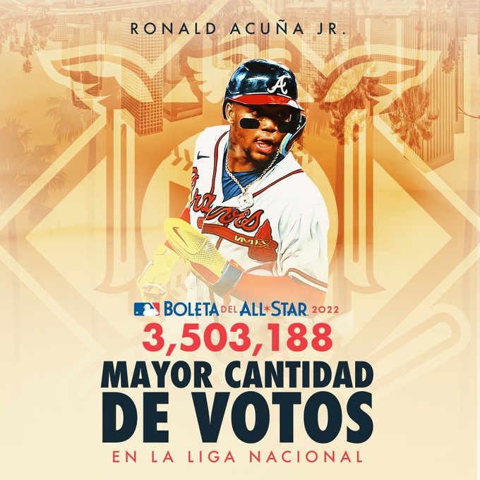 El jugador que recibió la mayor cantidad de votos en cada una de las ligas –los patrulleros Aaron Judge, de los Yanquis, y el venezolano Ronald Acuña Jr., de los Bravos– ya tienen asegurada la titularidad en la edición 92 del Clásico de Media Temporada que se disputará el 19 de julio en el Dodger Stadium de Los Ángeles.
