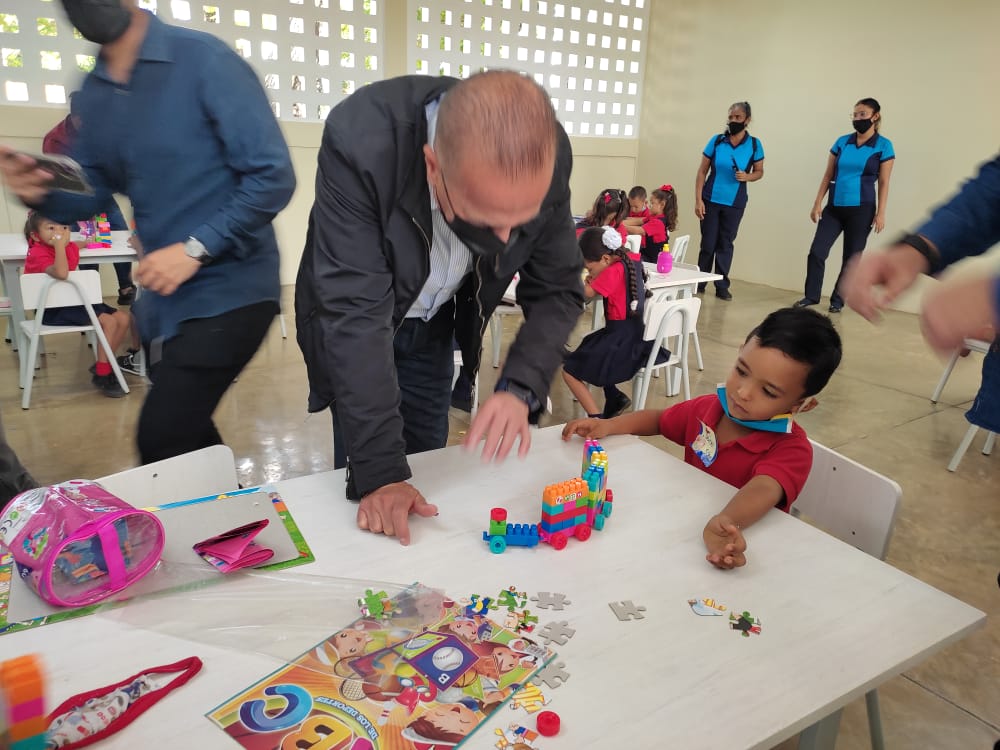 En esta escuela se recuperaron y modernizaron aulas de educación básica, preescolar, sala virtual, biblioteca, área administrativa, salas sanitarias, cocina, conserjería, módulo de servicio con tanque de agua subterráneo, depósito, cerca perimetral, parque infantil, con mesas de ajedrez, conserjería, paisajismo y alarma, trabajos imprescindibles para la formación académica y moral de nuestros niños y niñas.