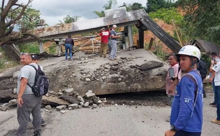 Se cayó puente de Onia en El Vigía por deslave que tapó una gandola y varios vehículos