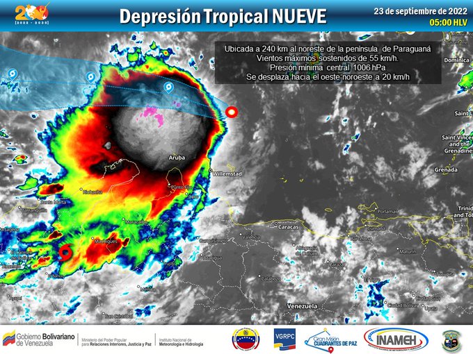 El organismo indicó en su reporte en redes sociales que sobre el Caribe pasa la depresión tropical número 9, que se formó está madrugada proveniente de la onda tropical 39.