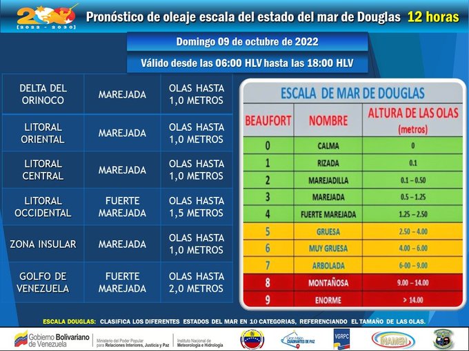 Inameh prevé un oleaje de 1 metro de altura en el Delta el Orinoco, la Zona Insular, el Litoral Central y el Litoral Oriental, mientras que en el Litoral Occidental serán de 1,5 metros y en el Golfo de Venezuela de 2 metros.