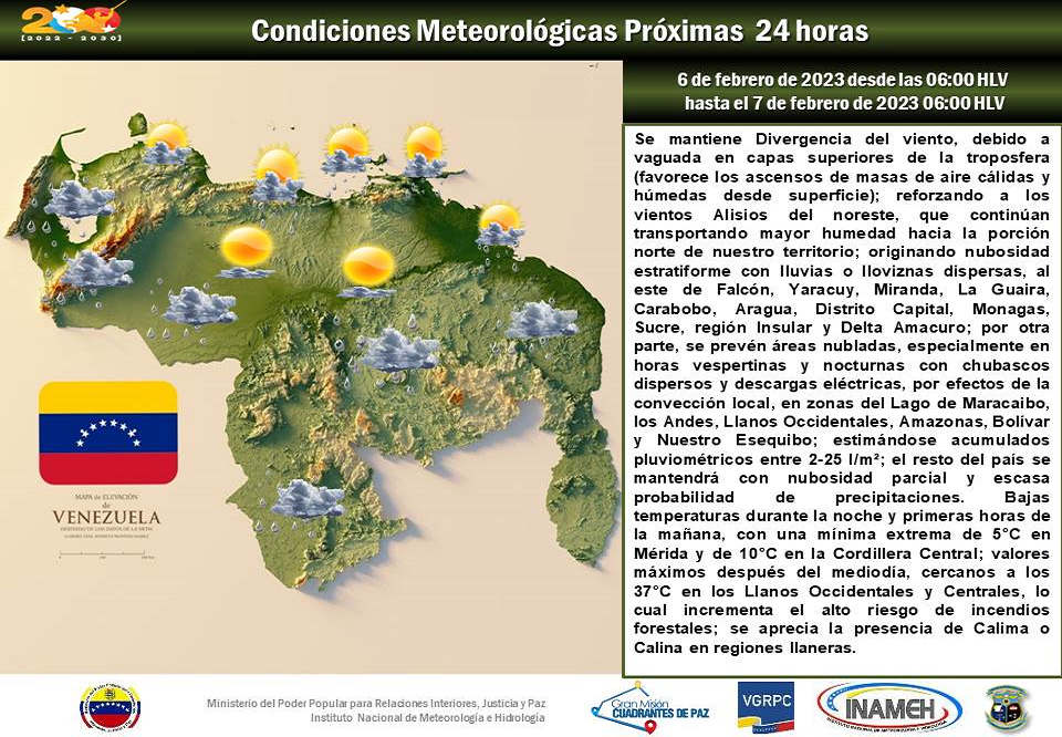 El Instituto Nacional de Meteorología e Hidrología (Inameh) reportó que este lunes se mantiene nubosidad fragmentada con posibles lluvias o lloviznas dispersas al este de Falcón, norte de Aragua, La Guaira, Miranda, Monagas y Delta Amacuro.