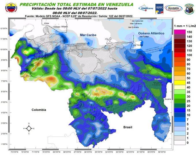 El organismo indicó en su reporte diario en redes sociales, que prevén lluvias o chubascos, algunos con descargas eléctricas en áreas del Zulia, Los Andes, Llanos Occidentales, Amazonas, Bolívar, Delta Amacuro y el Esequibo. El resto del país se mantendrá con nubosidad, con lluvias y lloviznas dispersas especialmente en horas de la tarde y noche.