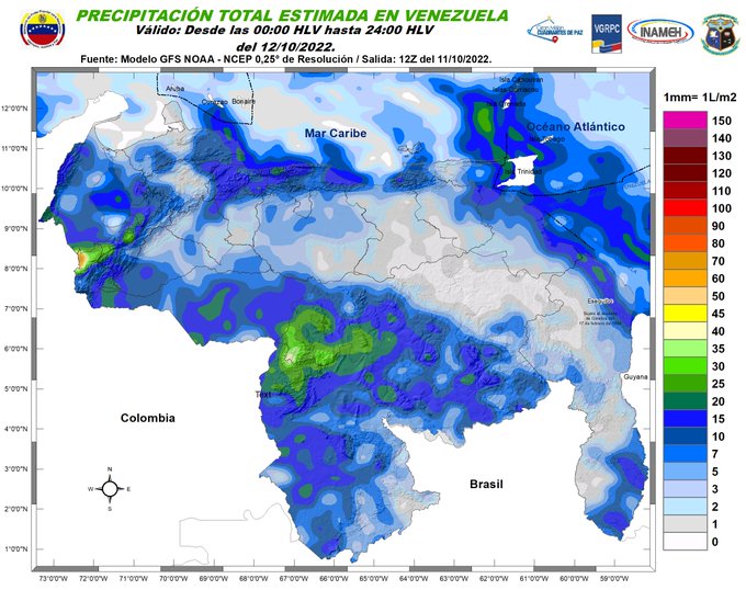 Inameh explicó que las lluvias se deben a la situación meteorológica originada por el desplazamiento de la Onda Tropical número 43 sobre el oriente del país, interactuando con la Zona de Convergencia Intertropical; ambos sistemas son reforzados por Divergencia del viento en los niveles medios y altos de la troposfera, sobre el Caribe venezolano.