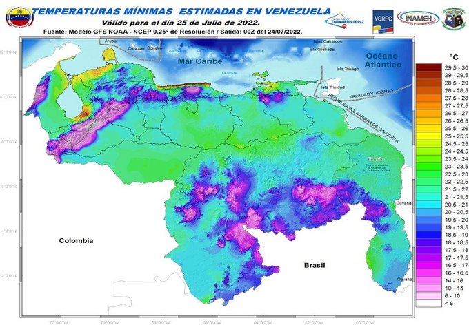 El organismo señaló en su reporte diario de Twitter, que se esperan lluvias en Zulia, Los Anndes, Llanos Occidentales y Centrales, Delta Amacuro, Sur de Anzoátegui, Sucre y Monagas, Bolívar, Amazonas y el Esequibo.