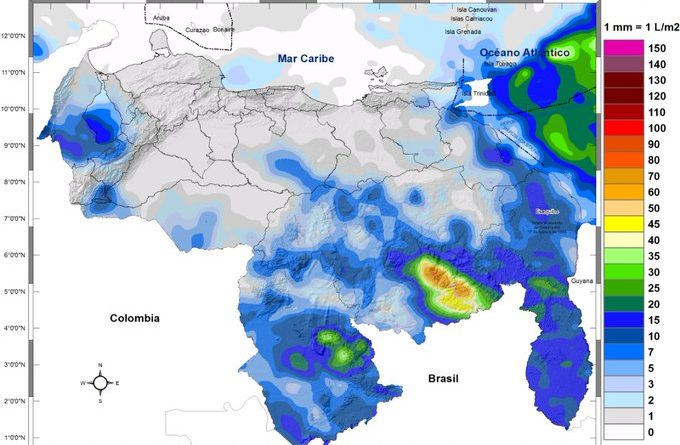 El organismo indicó en su reporte en redes sociales que podrían originarse nubosidad con precipitaciones de intensidad variable en Delta Amacuro, el Esequibo, Bolívar y Amazonas. Además prevén zonas nubladas o con lluvias en Guárico, Apure, Táchira, Mérida y Zulia.