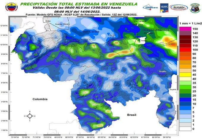 El organismo señaló en su reporte diario de Twitter las lluvias más intensas podrían originarse en Centro Norte Costero, Llanos Centrales, Nororiente, Delta Amacuro y Amazonas.