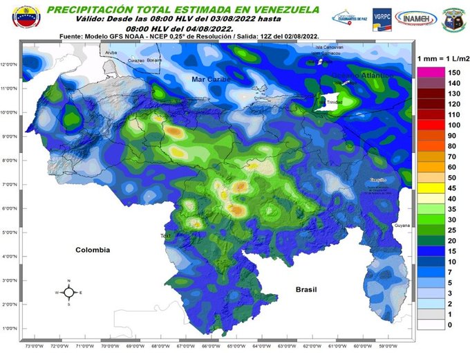 El organismo indicó en su reporte en redes sociales que las lluvias más intensas y frecuentes se prevén en zonas del Zulia, los Andes, Llanos Occidentales, Centro Norte Costero, Nororiente, Delta Amacuro, Amazonas, Bolívar y el Esequibo.