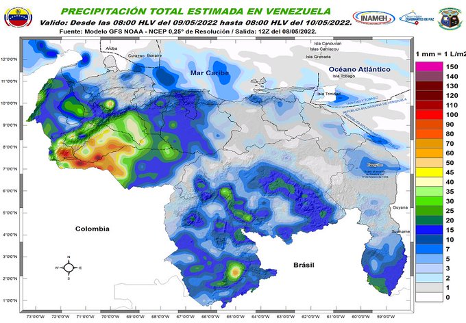 El Instituto Nacional de Meteorología e Hidrología (Inameh) informó este lunes que se espera nubosidad y precipitaciones de intensidad variable en gran parte del país.