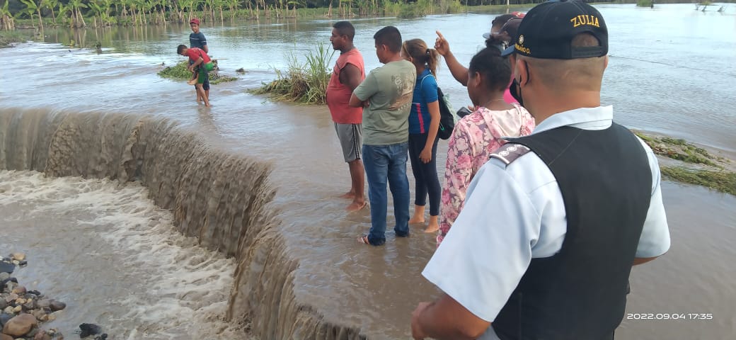 En la Parroquia Urribarri del municipio Colon del estado Zulia, en la tarde de este domingo 4 septiembre, se realizó un recorrido y supervisión a los niveles del agua donde oficiales policiales, en despliegue por la zona, pudieron evidenciar en el sector Mosaico, vía que conecta al municipio Colón y con Francisco Javier Pulgar, el desbordamiento del afluente supero el nivel de la carretera.