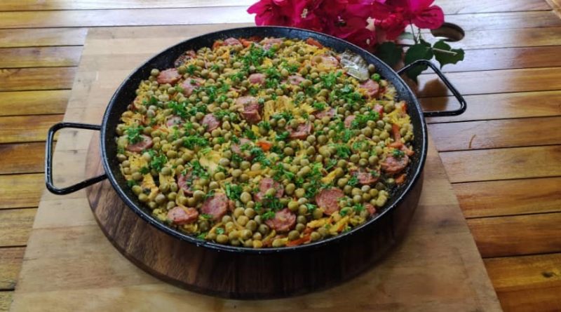 “Hay dos formas de hacer la paella valenciana. O que quede caldosa o que quede sequita. Es a gusto. Una vez lista la paella, se puede agregar el aceite de oliva y se le esparce perejil picadito,” detalla el chef Páez.