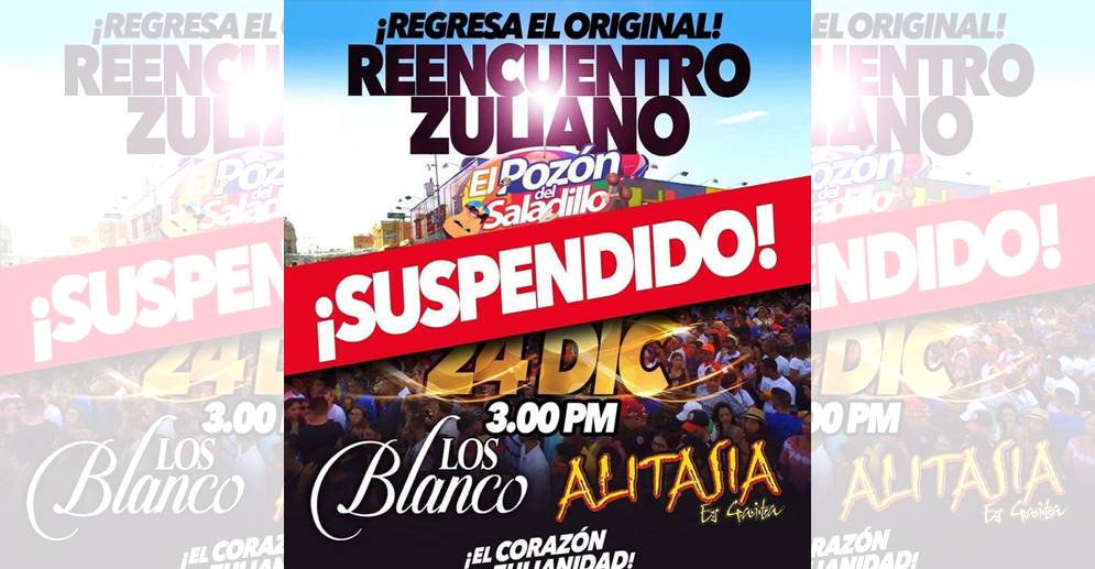 En su cuenta e Insragram los organizadores del evento informan que por primero esta salud y que como equuipo responsable y pensando en el bienestar social informan que se suspende en evento masivo, el #ReencuentroZuliano, previsto para el 4 de Diciembre próximo.
