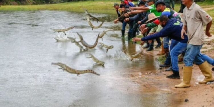 En Venezuela fueron liberados 170 caimanes del Orinoco en el estado Apure como parte de un plan de preservación de especies en peligro