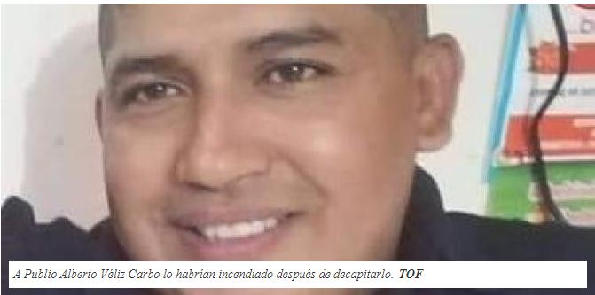 Quienes secuestraron, decapitaron e incendiaron el cuerpo de Publio Alberto Véliz Carbo, de 39 años, querían que la ciudadanía del cantón Simón Bolívar, en la provincia del Guayas, se enteraran del horror que cometieron, por lo que dejaron su cabeza en el parque central con una nota que decía: “Prohibido robar y extorsionar”.