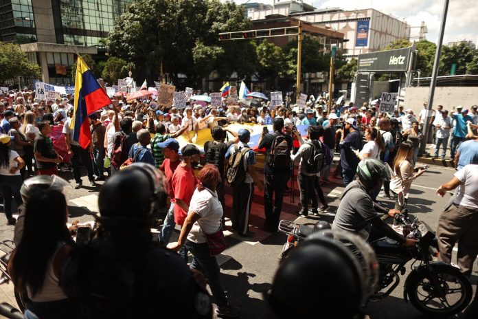 La manifestación de los trabajadores salió desde una céntrica plaza de Caracas, con el objetivo de llegar hasta la sede de la Fiscalía General, en el oeste de la ciudad, pero funcionarios de la Policía Nacional Bolivariana (PNB) impidieron el paso.
