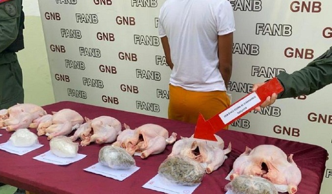 A través de la cuenta en Twitter del comandante estratégico operacional de la Fuerza Armada Nacional, Domingo Hernández Lárez, se conoció que efectivos del Destacamento – 411 detectaron a la mujer, quien llevaba la droga oculta en unos pollos beneficiados.