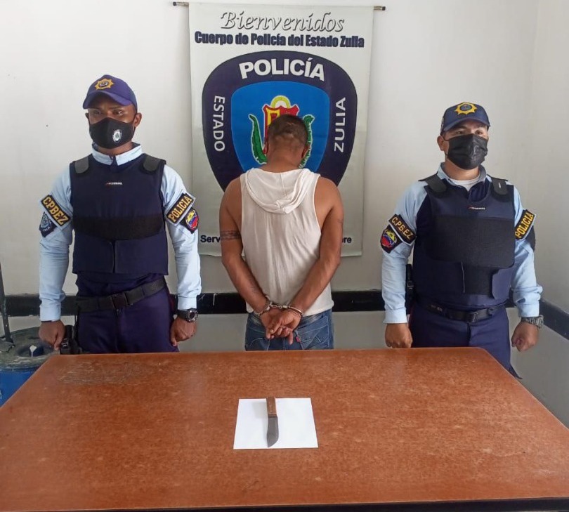 En pleno Paseo Ciencia de la parroquia Bolívar, fue aprehendido en flagrancia Hervis de Jesús Piña Marín (43), agrediendo verbalmente y amenazando de muerte con un cuchillo a una adolescente de 15 de edad, de inmediato los oficiales del Centro de Coordinación Policial Patrullaje Turístico y Ciclístico lo pusieron bajo custodia. En otro caso registrado en el barrio Hijo de Noely parroquia San Isidro, fue capturado Alberto Montiel (37), denunciado de agredir a su concubina y a su suegra, quedó en la sede del Centro de Coordinación Policial Maracaibo Oeste.