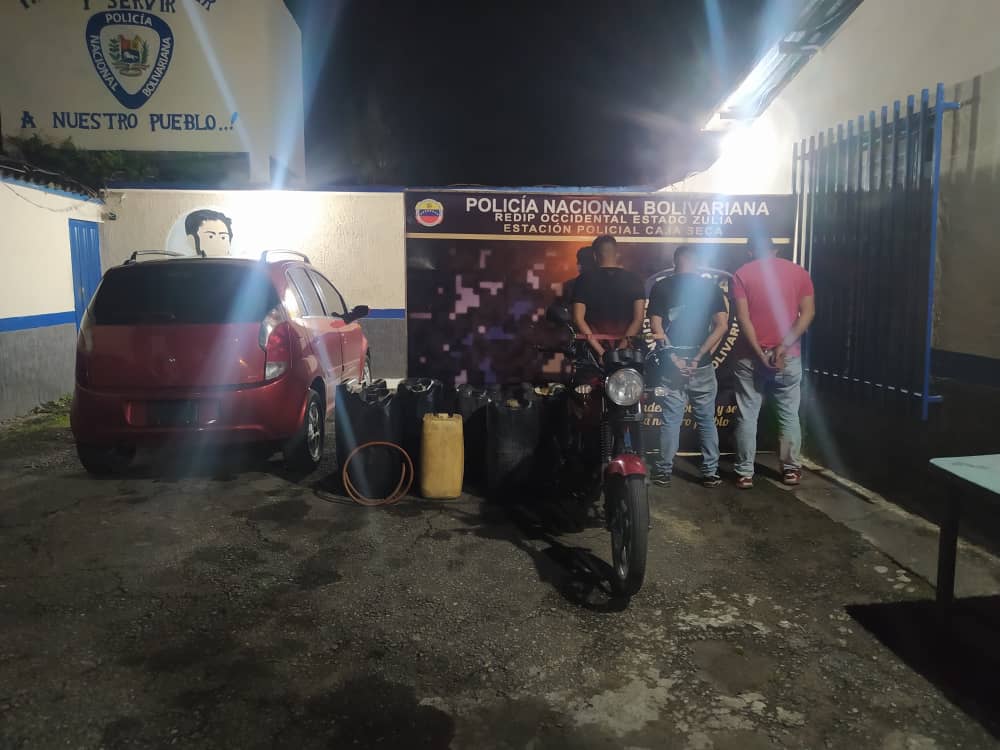 El procedimiento se llevó a cabo en la carretera Panamericana, parroquia Rómulo Gallegos del municipio Sucre del estado Zulia, donde la comisión en labores de patrullaje observaron a tres ciudadanos sospechosos dándole la voz de alto y posteriormente realizándoles una inspección al vehículo donde encontraron (450) litros de gasolina distribuidos en (06) pimpinas de (70) litros y una pimpina de (30) litros, siendo aprehendidos en flagrancia.