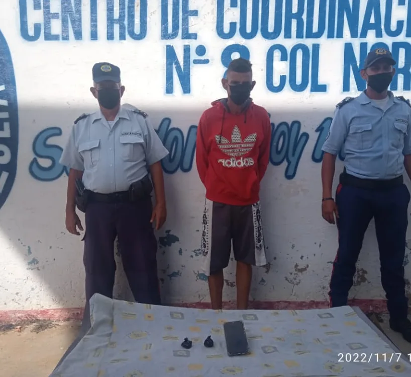 Por otro lado efectivos del Centro de Coordinación Policial San Francisco Este, recibieron una llamada telefónica por parte de vecinos del sector Rodeo II, parroquia Domitila Flores, municipio San Francisco, indicando que habían dos hombres fumando en la vía pública una sustancia que emanada un fuerte olor, afectando a los residentes. De inmediato los uniformados se acercaron al lugar donde lograron la captura de Richard Antonio Cespede de 22 años de edad y Eder Dario González Peña de 26 años de edad, se les incautó dos envoltorios con presunta marihuana, uno tipo cebollita y uno cilíndrico tipo cigarrillo, asimismo se les encontró un encendedor de bolsillo.
