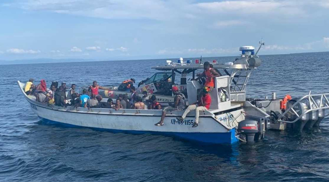 La Armada Nacional informó que 34 migrantes fueron rescatados en la noche del lunes 14 de marzo en el Golfo de Urabá tras ser hallados a la deriva en una embarcación en fibra de vidrio.