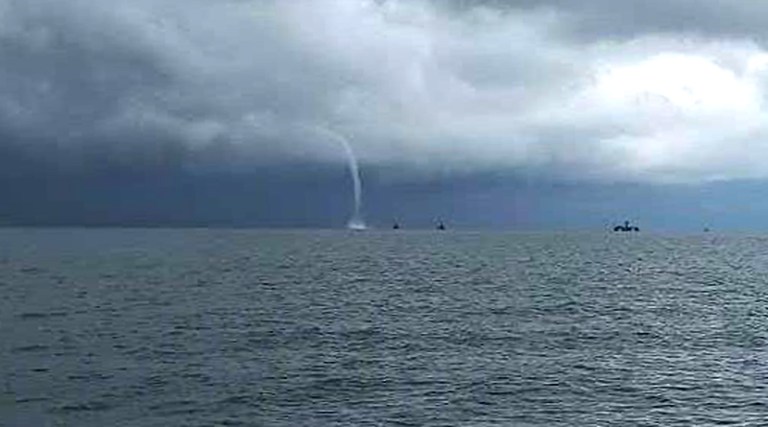 Varios pescadores grabaron el paso de los torbellinos, pero informó PC que los mismos habían perdido su fuerza.