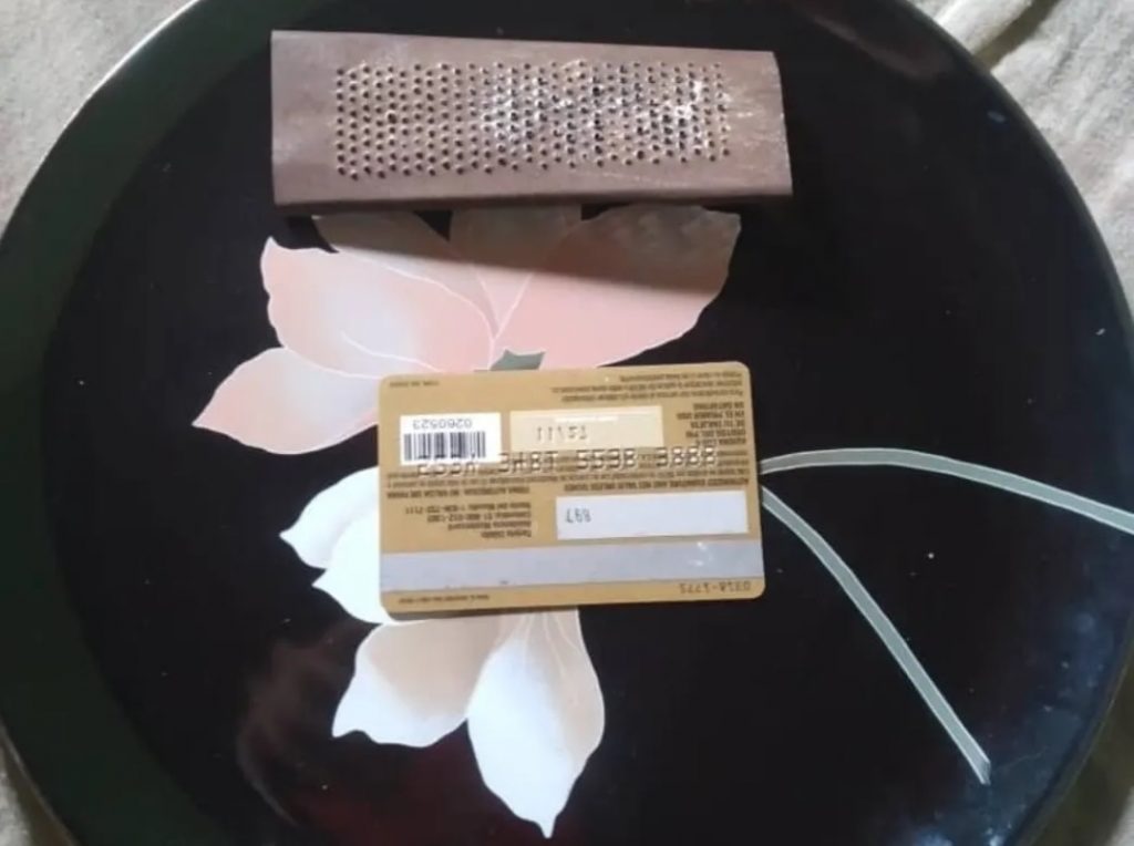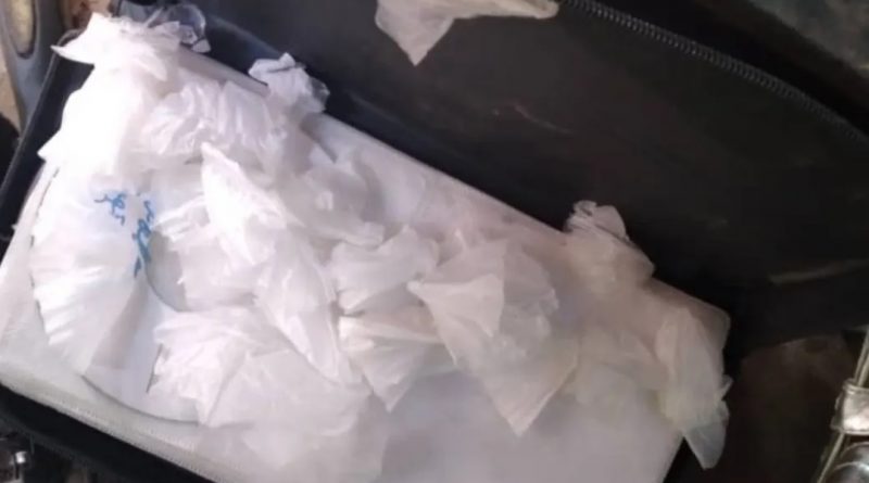 Al realizarle una inspección corporal le incautaron nueve envoltorios elaborados en material sintético de diferentes colores, tipo cebollitas contentivos de presunta marihuana con un peso de 0,8 gramos y un envoltorio de presunto Crack con un peso de 10.0 gramos, 28 bolsas recortadas de forma circular blancas y negras, un estuche, un cuchillo, un rayo de cocina, un plato de porcelana y una tarjeta de crédito.