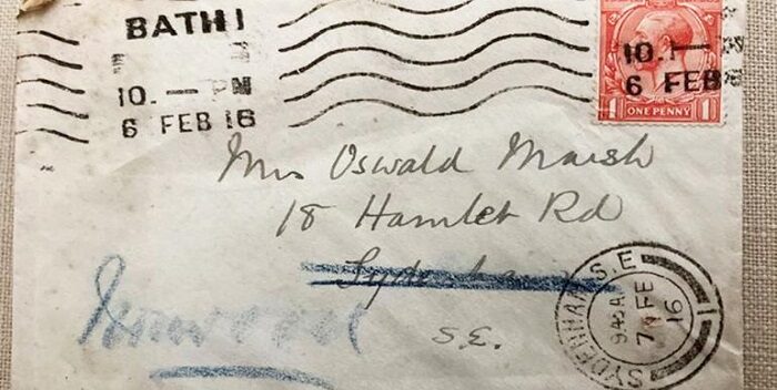 Una carta enviada en febrero de 1916 sorprendió a los residentes del destino indicado en el sobre, en el barrio londinense Crystal Palace, cuando en 2021 la recibieron en su buzón.