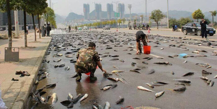 «La denominada lluvia de animales ocurre cuando pequeñas criaturas acuáticas, como ranas, cangrejos y peces pequeños son arrastrados por trombas o corrientes de aire que ocurren en la superficie de la Tierra. Luego caen al mismo tiempo que la lluvia», explicaron las autoridades.