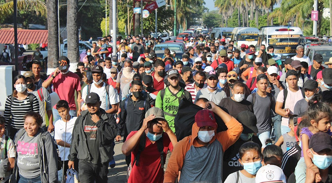 Unos 500 migrantes entre ellos venezolanos marchan para solicitar libre tránsito en México