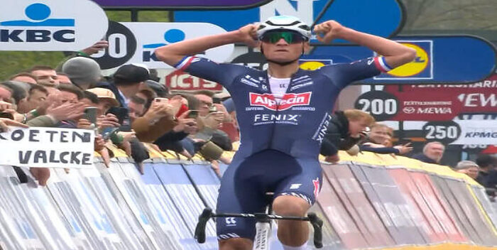 Van der Poel (Kapellen, Bélgica, 27 años), mantuvo un combate apasionante con Pogacar en los últimos muros, un mano a mano que tuvo un desenlace agónico en la recta de meta, cuando ambos, en un exceso de marcaje y confianza, fueron alcanzados a 300 metros de la línea. Van del Poel arrancó a tiempo para no verse sorprendido y alzó los brazos tras cumplir los 272 entre Amberes y Oudenaarde en un tiempo de 6h.18.22, a una media de 43,1 km/hora.