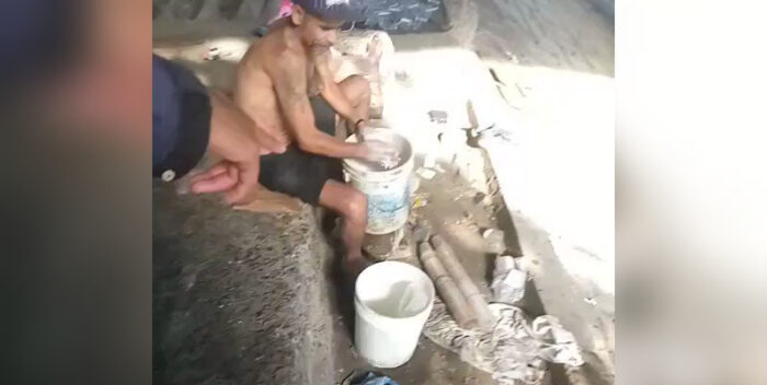 El rescatista Delmiro de Barrio difundió un video a través de su cuenta de Twitter en el que se ve a un presunto vendedor ambulante de Catia, lavando los vasos que vende con papelón con limón en la ribera del río Guaire.