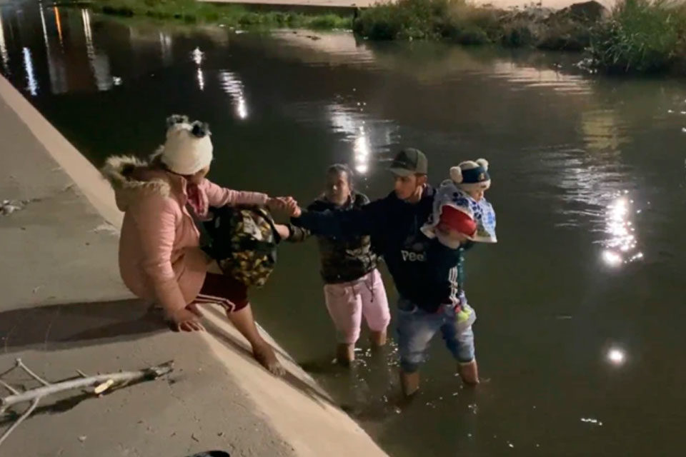 Descalzos y sin hacer caso de las bajas temperaturas, algunos migrantes venezolanos que acampan a la orilla del Río Grande en Ciudad Juárez, México, se dedican a cruzar en brazos a las personas hacia el otro lado para que no tengan que exponerse a las aguas sucias y frías del río.