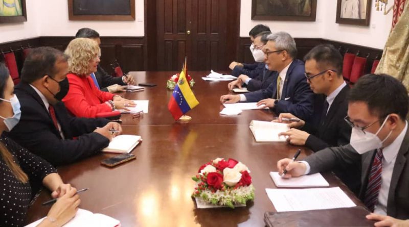 «En Caracas, la viceministra para Asia, Medio Oriente y Oceanía, Capaya Rodríguez, se reúne con el Director General de América Latina y el Caribe de la Cancillería China, Cai Wei«, reseñó la Cancillería en la red social Twitter.