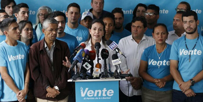 Vente Venezuela insistió este martes en que la dirección política que represente a los venezolanos “debe ser escogida por los ciudadanos y no impuesta por las cúpulas de los partidos, el régimen o la comunidad internacional”.