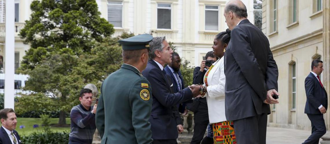La vicepresidenta de Colombia, Francia Márquez, recibió este lunes al secretario de Estado de EE.UU., Antony Blinken, en la Casa de Nariño, sede del Ejecutivo, donde el funcionario estadounidense se reunirá con el mandatario del país latinoamericano, Gustavo Petro.
